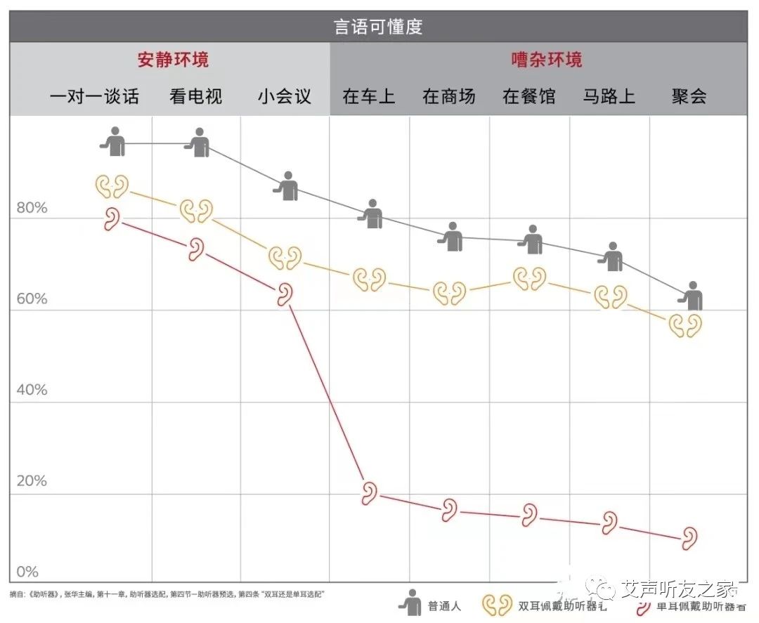 高頻陡降型聽力下降者,由于低頻好,所以能夠聽到大部分日常交流的聲音。但是由于高頻嚴重損失,有很多高頻的言語信息無法獲取,所以常表現為“聽得見,但聽不清”。助聽器是可以根據你聽力損失情況對中高低頻各個頻率點來逐一補償的,可以根據每個人的聽力需求來調配的!高頻損失是對清晰度有影響的,雙耳選配可以加強降噪和言語理解能力人耳的耳廓具有集音和降噪功能。對一個聽力有缺陷的聽力損失患者來說,加強信噪比是非常重要的。雙耳佩戴則意味著二個耳廓同時具備集音和降噪能力,對加強語言分辨能力有極大的意義。例如1:汽車喇叭響了,將聲信號傳到您的大腦。在極短的時間里,大腦將兩個耳朵接收到的信息按照能量、聲波的強度、到達耳朵的時間進行比較,立刻就可以判斷汽車來的方向,以及它離人的距離,這個過程叫作“聲源定位”。例如:在您左邊的汽車喇叭聲到達您左耳的時間比到達右耳的短一些,能量也大一些。這就是為什么您可以立即知道汽車正從左邊快速靠近。這種自然的方法可以讓您每天都可以安全而舒適地生活。例如2:想象一種日常情況,比如在飯桌上交談。您想和旁邊的人交談,但是家里的其他人也在說話。這時候這種背景雜音不僅讓您聽不清,而且使您聽不明白別人在說什么。您試圖通過調大助聽器的音量來彌補,但這樣只會更糟。所有的聲音都被放大了,而不是語音變得更清楚,這下您又會把聲音調小,然后聽到的聲音又變差。雙耳佩戴助聽器,可以充分發揮大腦聽覺中樞神經系統中的雙耳聽覺功能,有助于在嘈雜的噪聲環境中提高言語分辨率,有效地抑制背景噪音,讓您聽得更清晰。再加上雙耳配戴助聽器可以分別降低約5dB的助聽器輸出功率,這對于您來說,一方面可以保護您的殘余聽力,更重要的是,由于通過助聽器需要放大的聲音相對減小,因此背景噪音也將不再困擾您,而惱人的嘯叫聲也遠離您了!提高辨別聲音方位的能力; 使您輕松聆聽,有效提高語言理解度;在嘈雜的環境中有效抑制噪音,更容易理解別人的談話,聆聽自如;大大降低進一步“聽力喪失”的危險;讓您輕松獲得更完美、舒適、動聽的聲音;辨別聲音來源、提高聲源定位能力。佩戴助聽器都是聽力有這樣或那樣的問題,不是聽不清就是聽不見,經過日新月異的變遷,人們可以通過佩戴助聽器解決人們在與人交流,打電話,看電視,開會,學習,聽歌等很多日常活動中因為聽力下降而帶來的生活困擾。我們要積極正確對待聽力問題,不要偏聽偏信,科學驗配,只選對的,不選貴的。