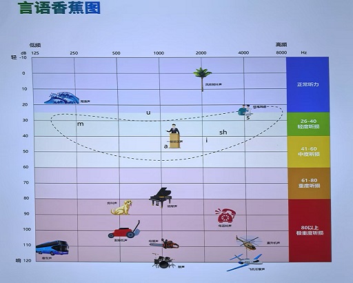 ②聽力香蕉圖(聲場以聽力級建立),測得的聽閾結果與正常人言語語音香蕉圖比較,一般認為助聽后聽閾在香蕉圖范圍以內為佳。