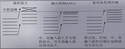 感音神經性聽力下降者最明顯的癥狀就是聽力動態范圍的減少,采用限幅性的壓縮,即 AGCo 線路,將使聽障者對大聲感受的差異性變小,換句話說,可能80 dB 輸入聲放大后的響度跟90 dB 輸入聲放大后的響度在聽障者看來差別不大,而如果使用寬動態范圍壓縮,則放大后的響度級會分布得均勻一些,聲音聽上去就變得更為自然柔和。