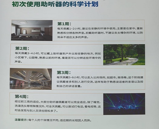 答:初次佩戴助聽器時,大腦需要時間去適應新的聲音。因為助聽器放大了所有聲音,包括一些平時被忽略的環境聲,所以會感覺有些奇怪。通常經過一段時間的適應,大腦會逐漸習慣這些聲音,聆聽也會變得更自然。一般建議先從安靜環境開始佩戴,每天佩戴時間逐步增加,幫助大腦適應。這也是我們強調《初次使用助聽器的科學計劃》對初次佩戴助聽器的使用者的重要性。