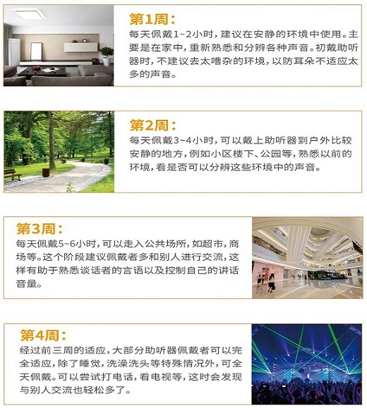 第3周:佩戴6-8小時,可進入嘈雜環境(如超市),每2小時可摘機休息15分鐘。