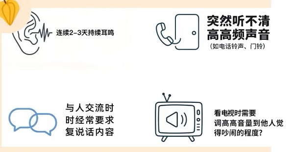 ●突然聽不清高高頻聲音(如電話鈴聲、門鈴)