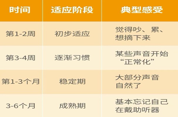 給適應期至少2--4周,如果4周后仍然嚴重不適,再去驗配中心調整,不要戴了兩三天就下結論“這助聽器不行”。